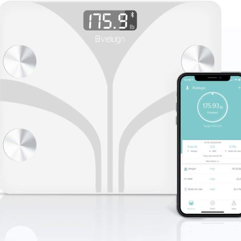 Body Fat Scale, Smart Wireless Digital Bathroom BMI Weight Scale, Body Composition Analyzer Health Monitor with Tempered Glass Platform Large Digital Backlit LCD with Smartphone App – White