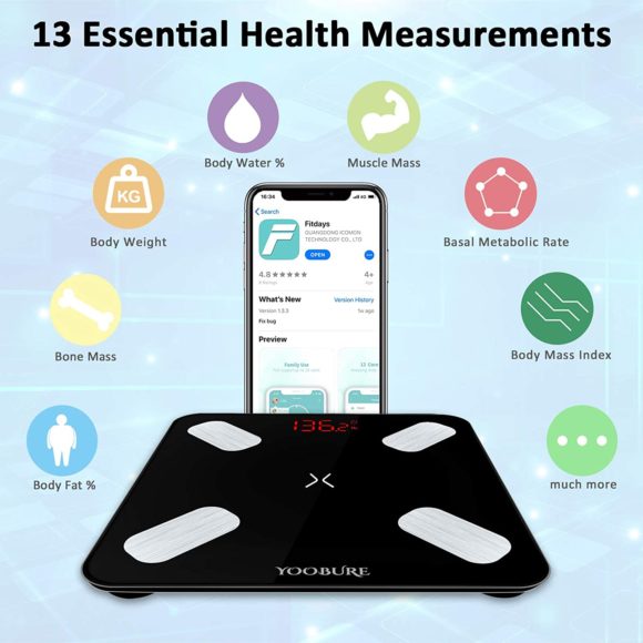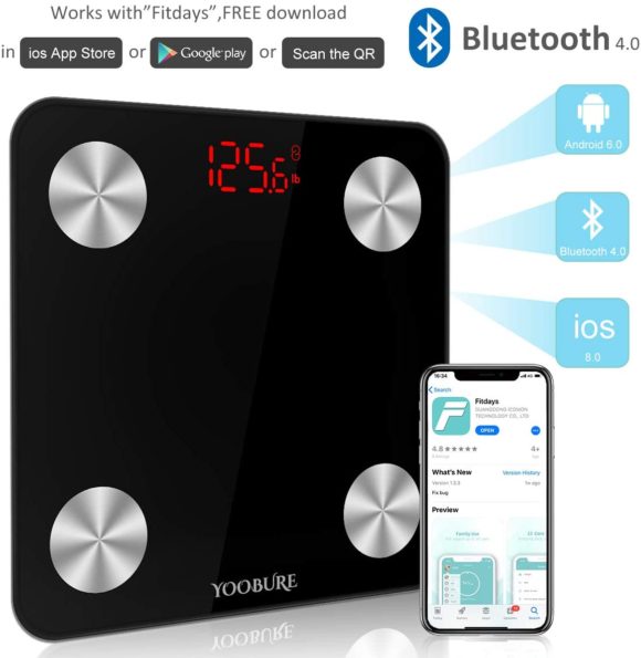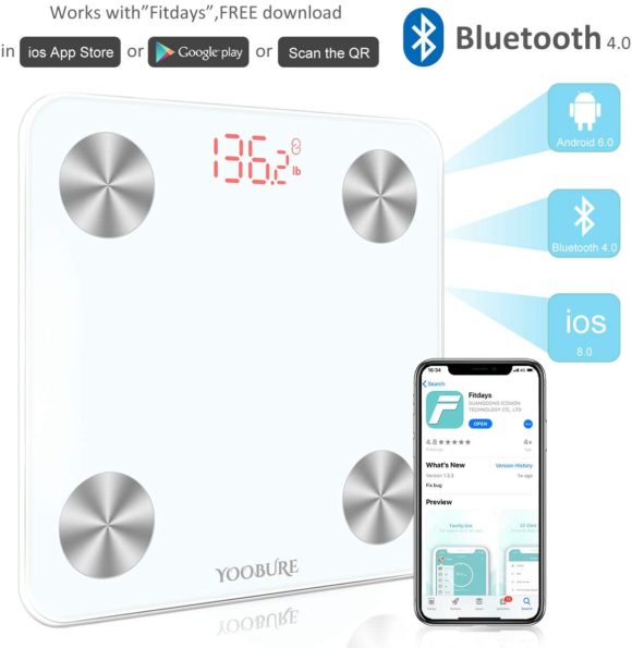 - гЂђSYNC WITH FITNESS APP гЂ‘Smart Body Scale with easy operation, download Fitdays APP through Apple Store or Google Play or scan the QR code in the instruction manual, connect via Bluetooth 4.0, support most of smart phones, help to track and manage your health index, keep you and your family healthy at any time.